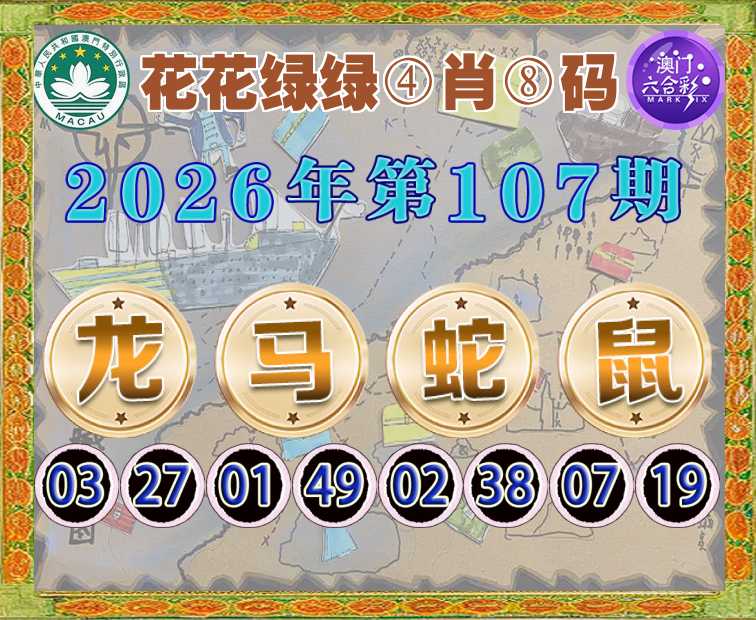 107期: 花花绿绿  ♣️④肖⑧码 ♣️【龙蛇鼠】开:马49