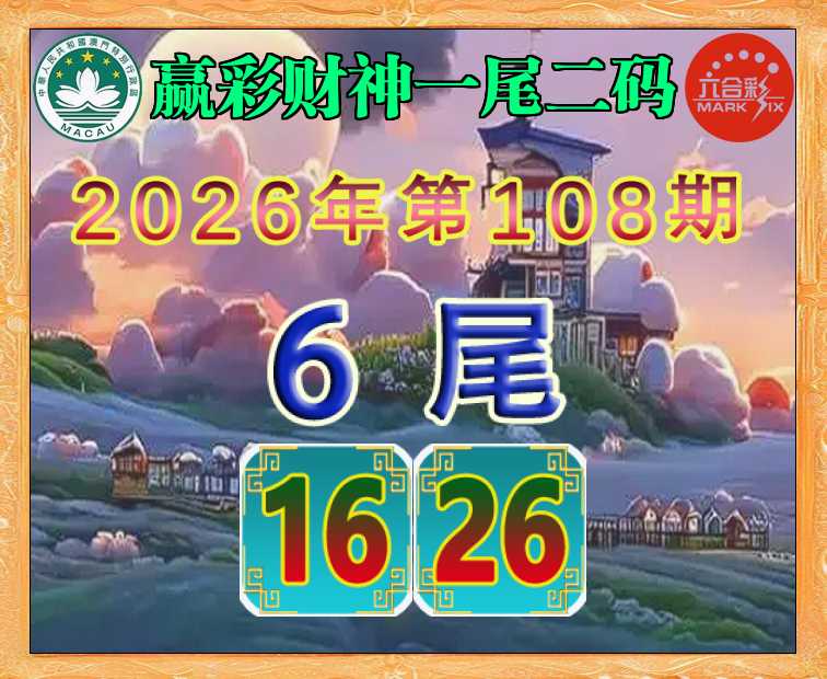108期:《赢彩财神》 🌲一尾二码🌲【6尾主:16.26】开:00准