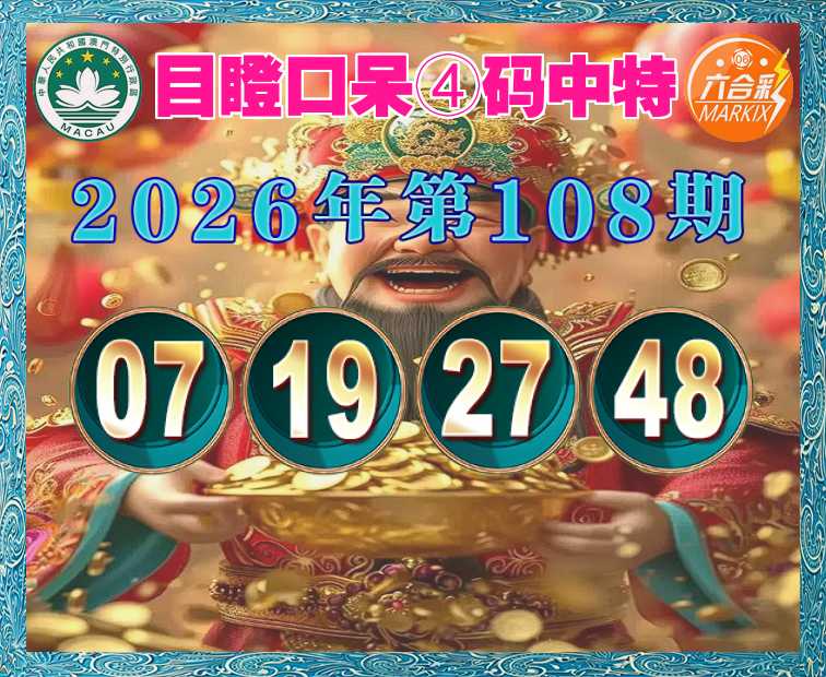 108期: 🚡『目瞪口呆』 🚡④码中特🚡【07.19.27.48】开:00准