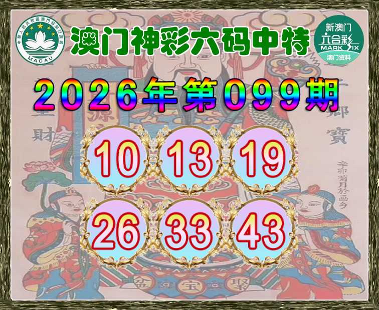 099期:『澳门神彩』 🍀六码中特🍀【10.13.19.26.33.43】开:12