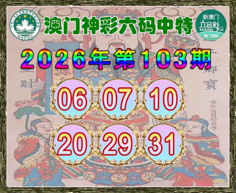 103期:『澳门神彩』 🍀六码中特🍀【06.07.10.20.29.31】开:06