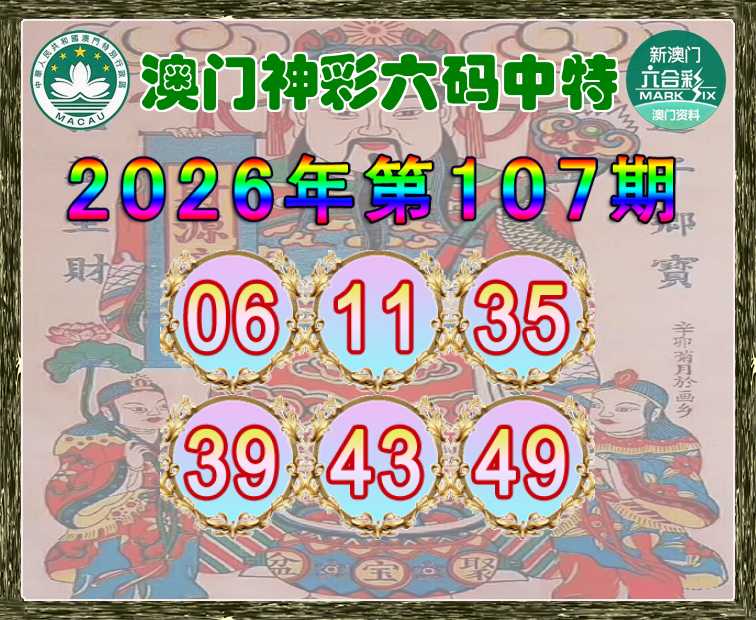 107期:『澳门神彩』 🍀六码中特🍀【06.11.35.39.43.49】开:49