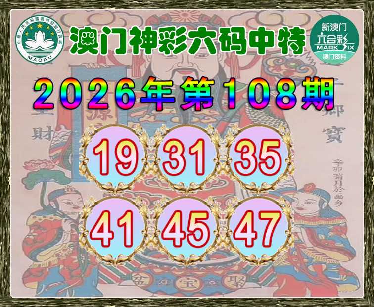 108期:『澳门神彩』 🍀六码中特🍀【19.31.35.41.45.47】开:00准